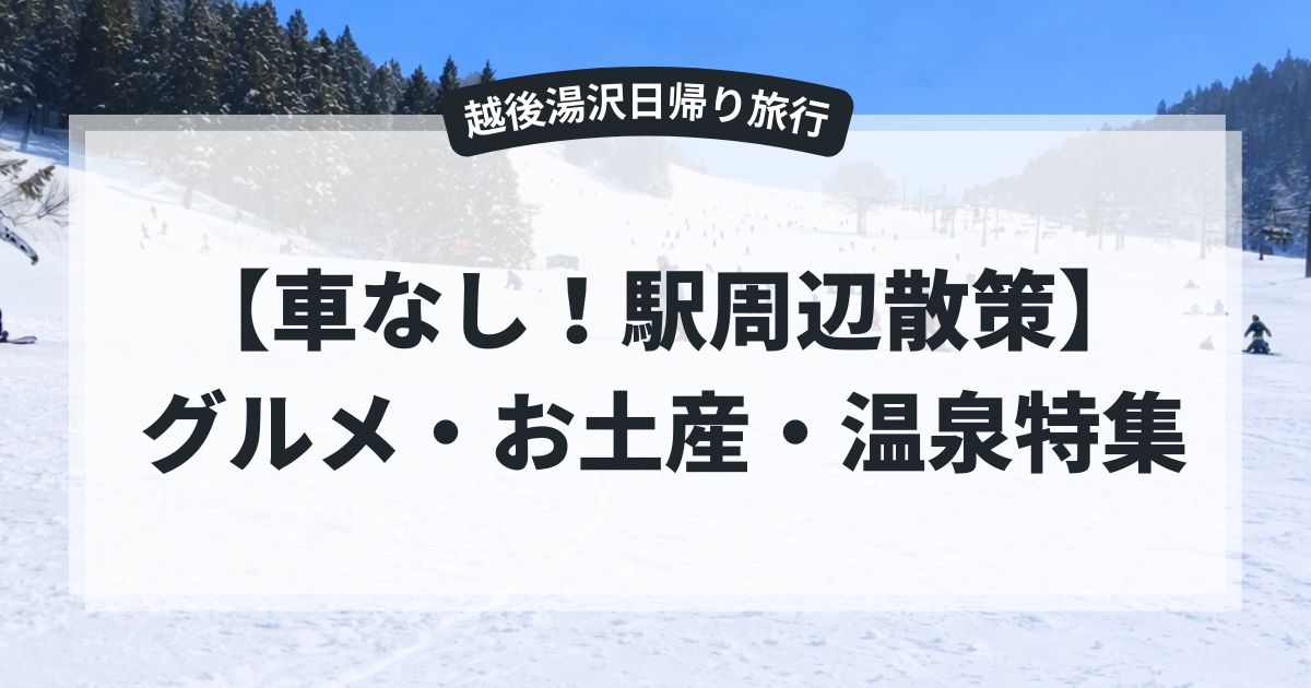 越後湯沢駅周辺には、日帰り温泉やグルメ、新潟ならではのお土産屋さんが充実しており、車がなくても存分に楽しむことができました。