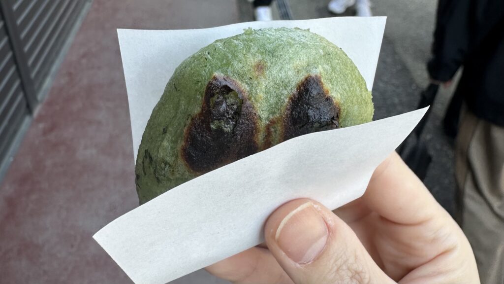 こちらのお店では、店頭で草もちの他にも、とうもろこしやお団子が焼かれています。