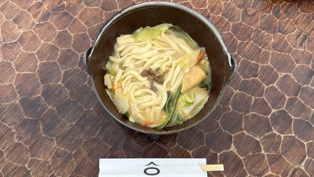 優しい味噌の味と野菜、そしてお餅のようにもちもちと弾力のあるほうとうが最高です。